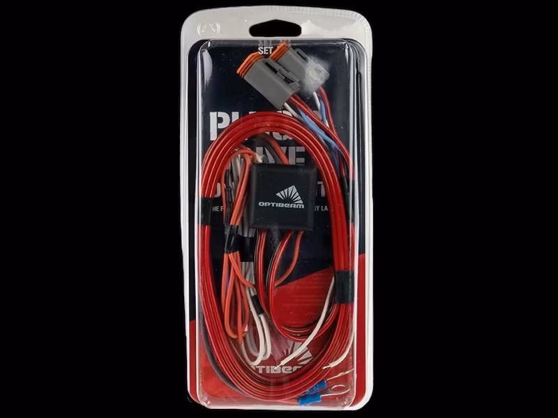 Plug&Drive wiring kit for two additional lights, 2 x 4-pin Deutsch DT connectors, CAN-compatible, corrosion-resistant, fully electronic design, replaces both fuse and relay. Built-in ground fault protection. Also works in vehicles where power is supplied in pulses to the headlights. 12V: 2 x 145W, 24V: 2 x 300W. Deutsch wiring kits for additional lights, utilizing modern semiconductor technology, save time and costs while ensuring reliable moisture-resistant connections for all types of auxiliary light combinations.