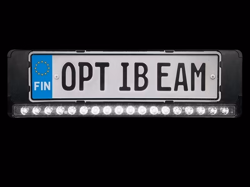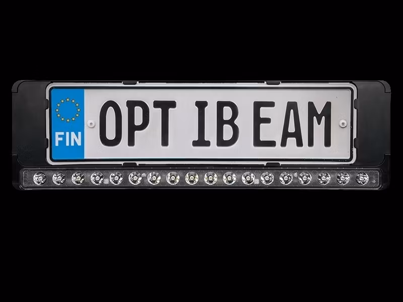 Designed for Finnish EU license plates (442x118mm), featuring a built-in relay system for seamless operation.